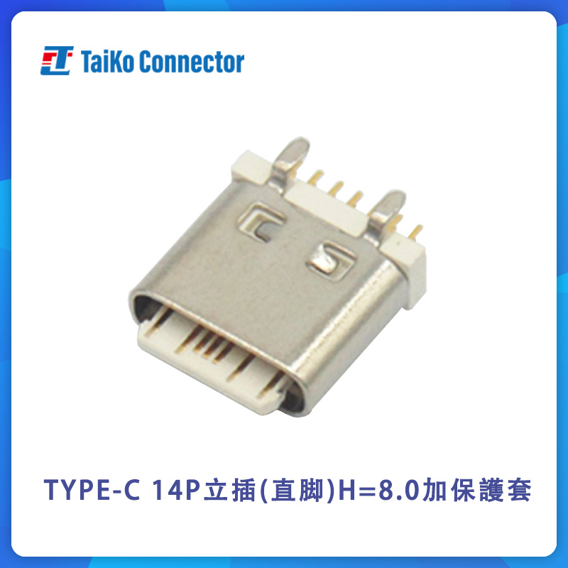 TYPE-C 14P立插(直腳)H=8.0加保護(hù)套